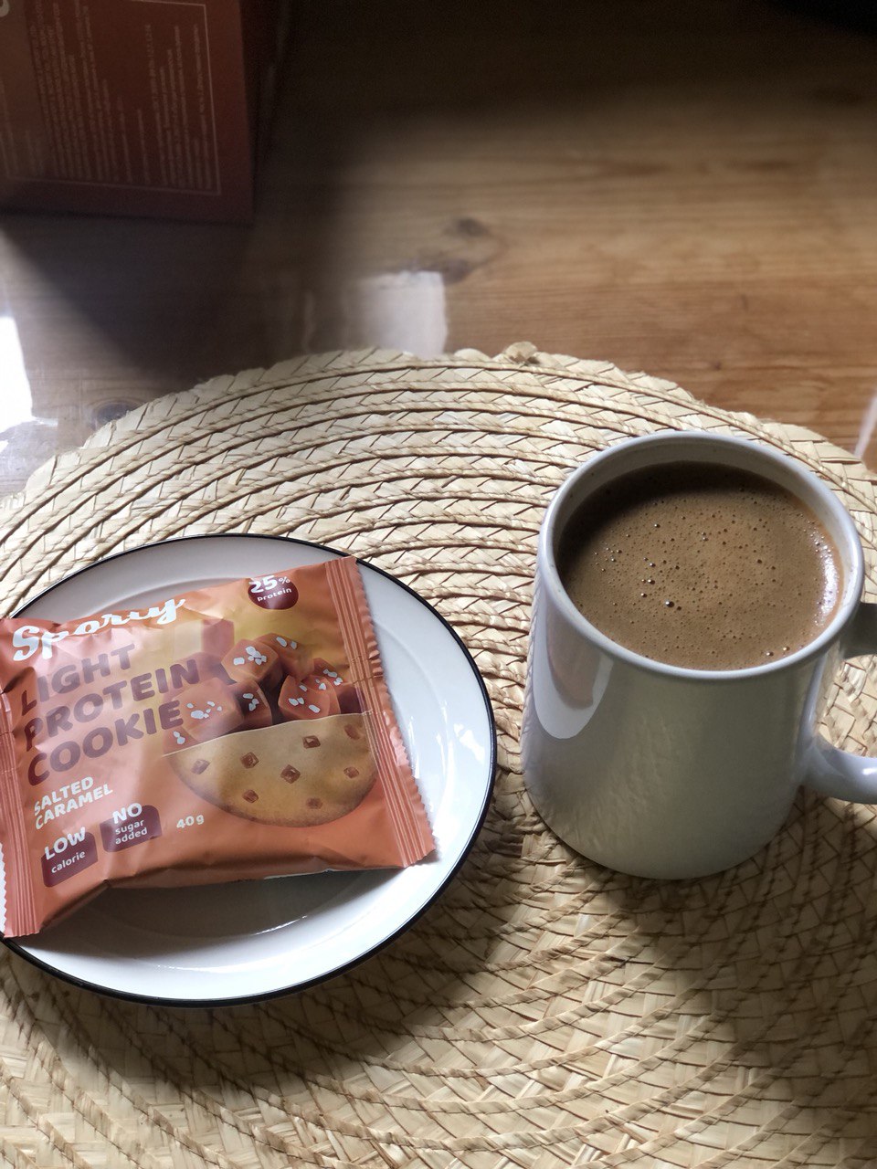 В данный момент у меня там печенье обычное, печенье протеиновое, протеиновый же батончик, сладкие хлебцы, пишмание, шоколадная паста, японские моти и глазированные сырки. Последние я держу в холодильнике, а положила в коробку только для фото.