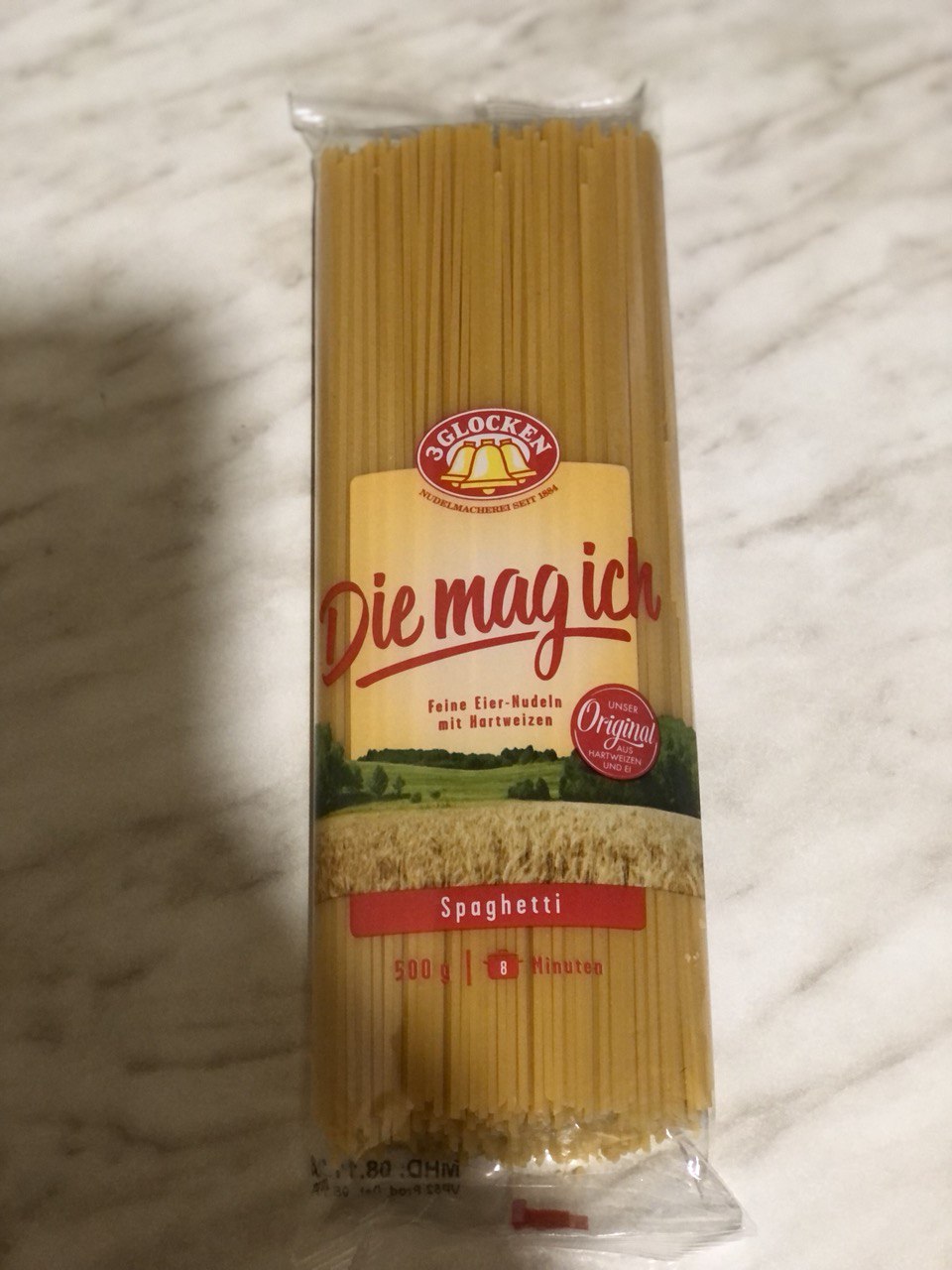 Макароны. Я не ела их четыре месяца и не испытываю к ним тяги вообще, купила пачку спагетти больше из любопытства, поностальгировать, так сказать. Но не удалось. Причём намеренно купила немецкие макароны «Die mag ich», которые обожала лет 15 тому назад. Может, эти макарошки я и любила в своё время, но в этот раз я не почувствовала никакого удовольствия и особенного вкуса. Лучше бы сварила рис.
