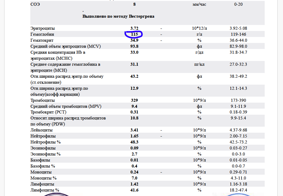 Я повторно сдала общий анализ крови. Результат неутешительный: