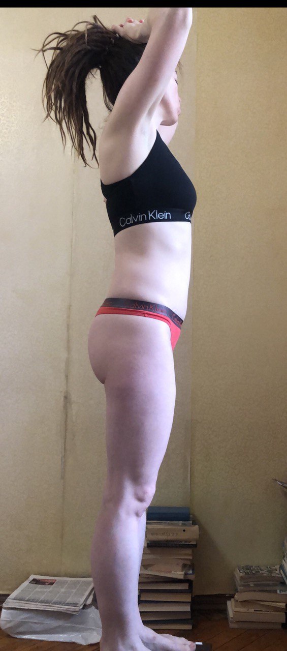 Всё отлично, Владимир меня хвалит). Ну я и сама довольна. Кстати, если смотреть со спины, то талия уже более или менее ощутимо виднеется, а вот спереди словно и нет никаких изменений. Нажрала себе спасательный круг, что называется. Ну ладно. Со временем уберу.
